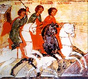 The three brothers, triplets, Speusippus, Eleusippus, Meleusippus all suffered for Christ in France during the reign of Emperor Marcus Aurelius (161 A.D. -180A.D.). At first, only Leonilla was a Christian while her grandsons were heathens. After prolonged counseling on the part of their pious grandmother and of the local priest, these three brothers received baptism. Having been baptized and with youthful zeal, they began to live a devoted life for their Faith and with this passion destroyed all the idols in the whole vicinity. Accused and brought before the tribunal, they acknowledged their act and openly confessed their faith in Christ. The judge had them thrown into prison and summoned Leonilla, the grandmother, and directed that she, too, go to the prison and counsel her grandsons to deny Christ and to worship the idols. Without a word, Leonilla went to the prison, but instead of counseling her grandsons to deny the True Faith, she began to encourage them not to waver but to endure all torments to the end and to die for Christ. When the judge, again, questioned them and realized their even stronger steadfastness in the Faith, he condemned them to death. At first, all three of them were hanged on a tree where they hung "as strings on a gulsa"(*) after which, they were flogged and finally burned in fire. A certain woman, Jovilla, enthusiastic at the courage of these martyrs cried out: "I am a Christian also!" They immediately apprehended her who, together with the elderly Leonilla, was beheaded.]
