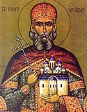 Lazar was one of the Serbian noblemen who ruled the Serbian empire after the death of Tsar Dushan. After the death of Tsar Urosh, Patriarch Ephrem crowned Lazar as the Serbian king. Lazar sent a delegation to Constantinople with the monk Isaiah to implore the patriarch to lift [remove] the anathema from the Serbian people. He fought against the Turkish powers on several occasions. Finally, he clashed [fought] on the Field of Blackbirds [Kosovo Polje] on June 15, 1389 A.D. against the Turkish Emperor Amurat where he was beheaded. His body was translated and interred in Ravanica, his memorial church [Zaduzbina] near Cuprija and later was translated to Ravanica in Srem and from there, during the Second World War (1942) was translated to Belgrade and placed in the Cathedral Church of the Holy Archangel Michael where it rests today incorrupt and extends comfort and healing to all those who turn to him with prayer. [In 1989, on the occasion of the six-hundred year anniversary of his martyrdom, St. Lazar's relics were again translated to the monastery of Ravanica in Cuprija]. St. Lazar restored the monasteries of Hilendar [Mt. Athos] and Gornjak. He built Ravanica and Lazarica [in Krusevac] and was a benefactor of the Russian monastery St. Pantaleon [Mt. Athos] as well as many other churches and monasteries.